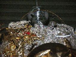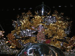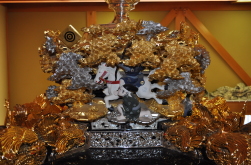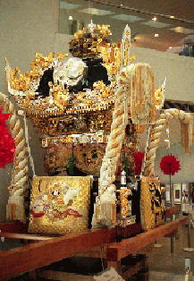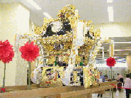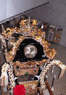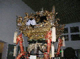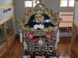 先代屋台がフル装備で、昔の写真、資料、獅子頭、