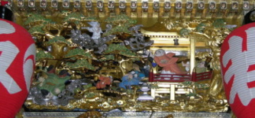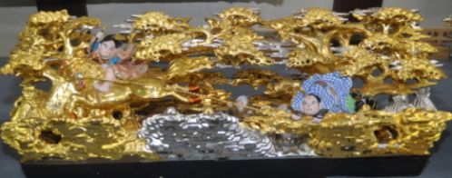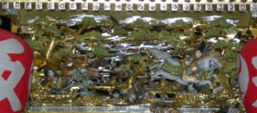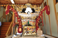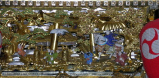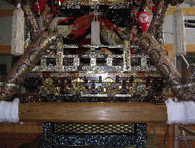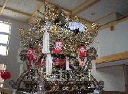 大正12年に新調され平成5年まで使用、以後屋台蔵に保存されていました。、平成18年9月より魚吹八幡神社横の社務所に展示される。