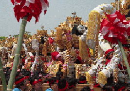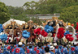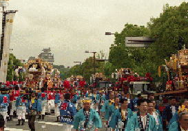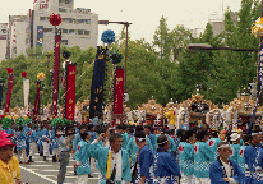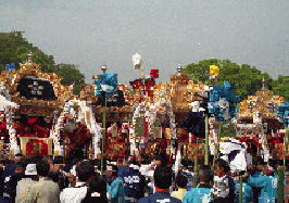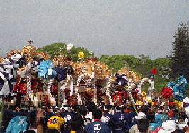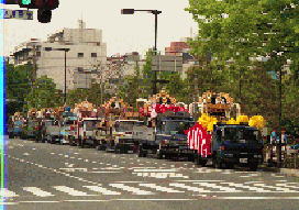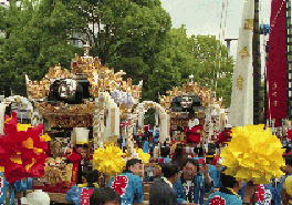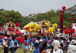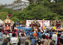 大手前通りに勢揃いした各町の屋台