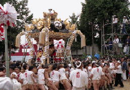 平成15年屋台新調 上内兼夫(棟梁) 二代目小河義保(彫刻師)