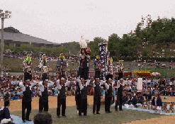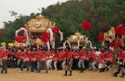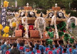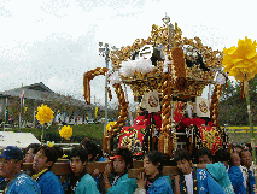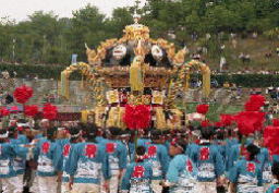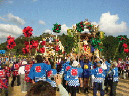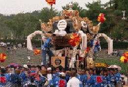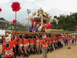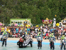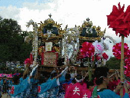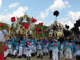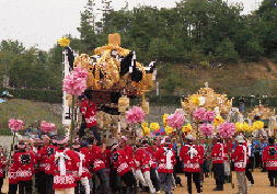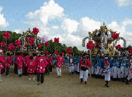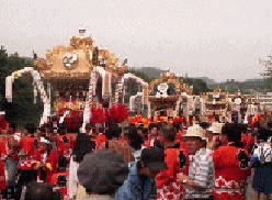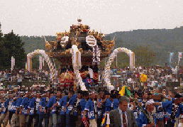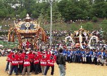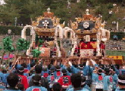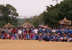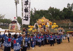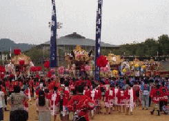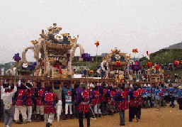 平成6年10月10日(月)町内の屋台が中央公民館グランドに集まる