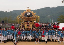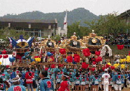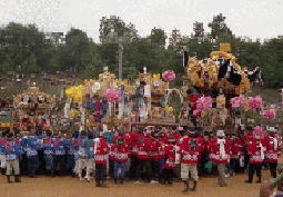 中央公民館グランドに10年ぶりに屋台が集合する屋台入場後