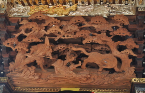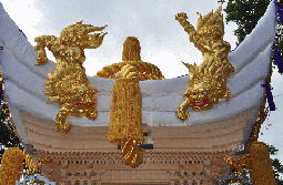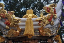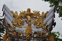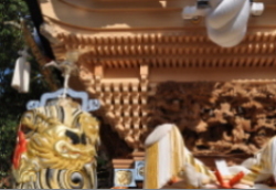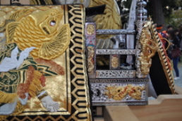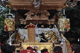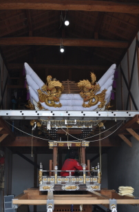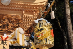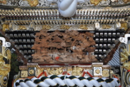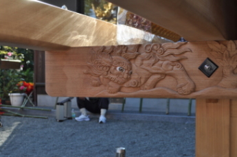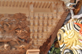平成25年脇棒受けに唐獅子と牡丹の彫刻が入る