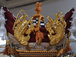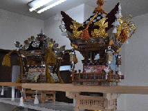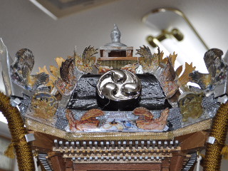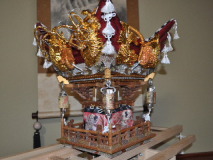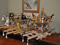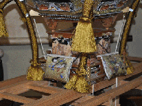 第2作目:長さ84cm 高さ60cm 幅34cm 芯幅12cm 高欄掛と水引幕:龍,鯉、鷲、虎退治